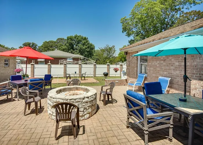 La Centrally Located Hampton Home 6 Mi To Downtown! se encuentra a 6 km del Hampton Coliseum e invita a los huéspedes a disfrutar de un patio soleado.